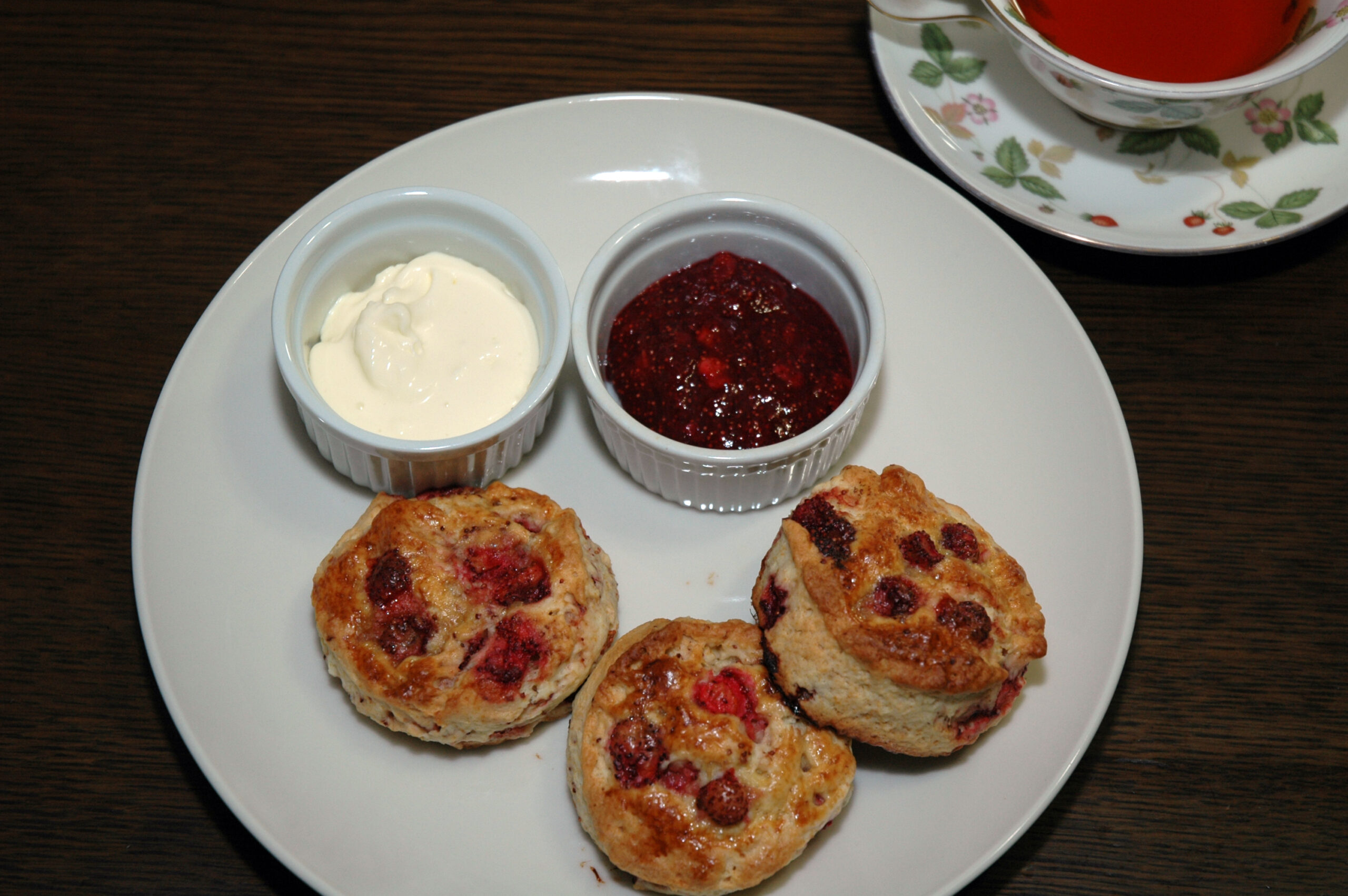 考えてみたら、ウェッジウッド(Wedgwood)のティーカップの定番と言えば「ワイルドストロベリー」。こうなったら、紅茶と合わせて料理はスコーンしかありません。ジャムも作って添えました。生地に冷凍のままのワイルドストロベリーを混ぜるだけで、あとは通常のスコーンのレシピ通り。ジャムは少しだけ砂糖とレモン汁を加えて5分も煮込めば完成という簡単さでした。