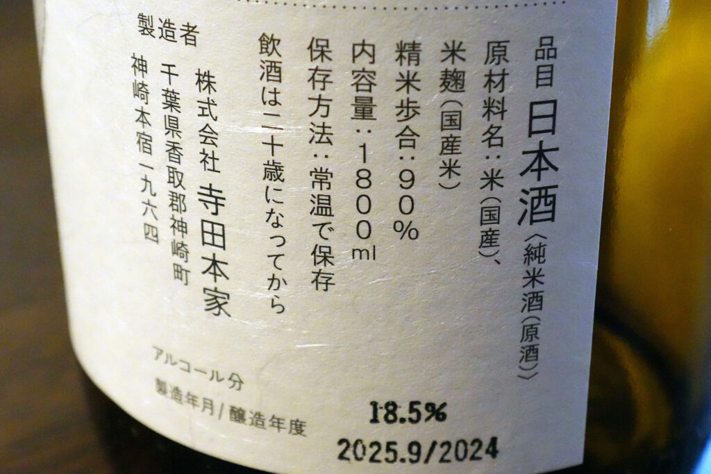 精米歩合は90%。磨いてない! 原酒なのでアルコール度数は18.5度と高めだ。